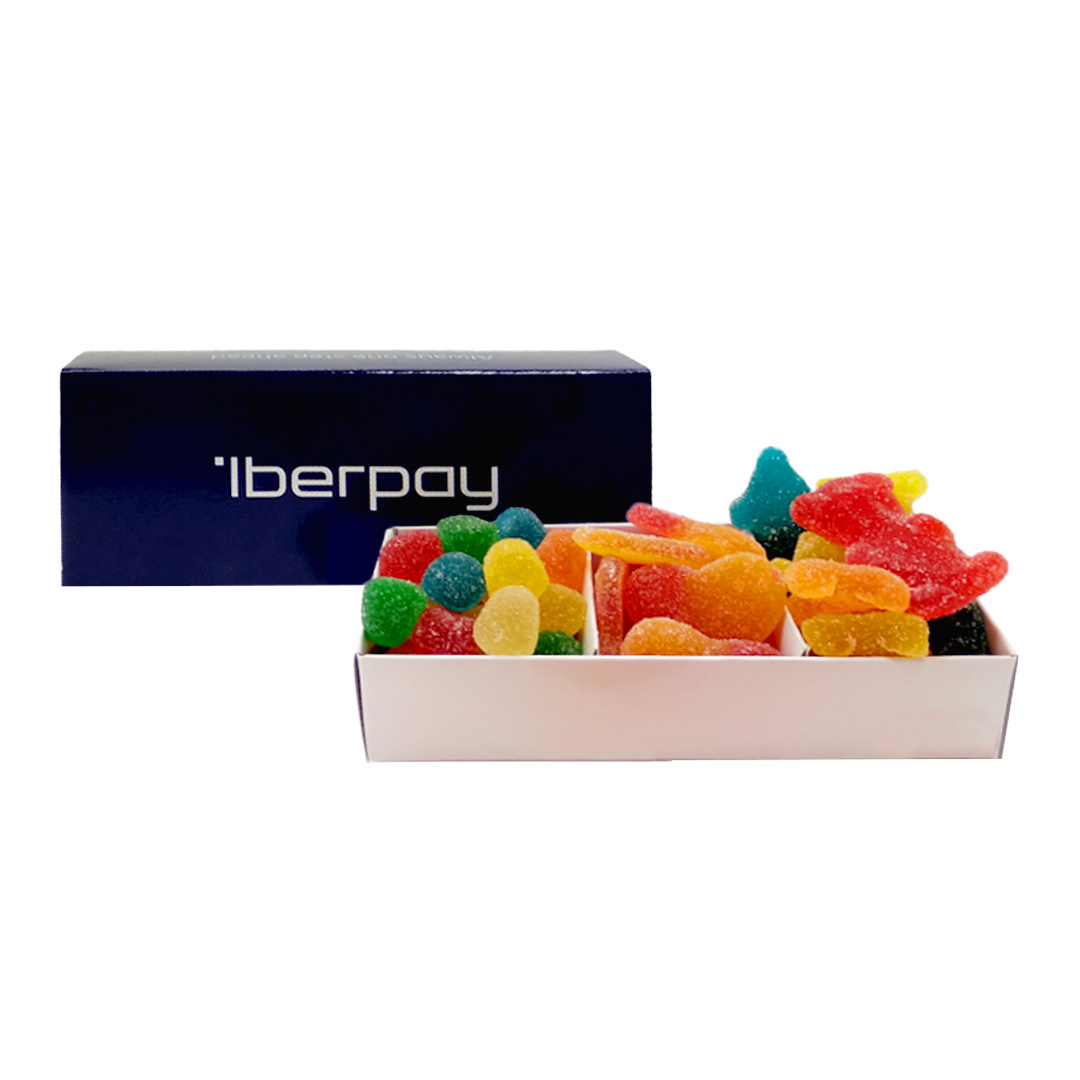 Description: cardboard chest (120x57x35 mm) with assortments of 3 candies to choose from.