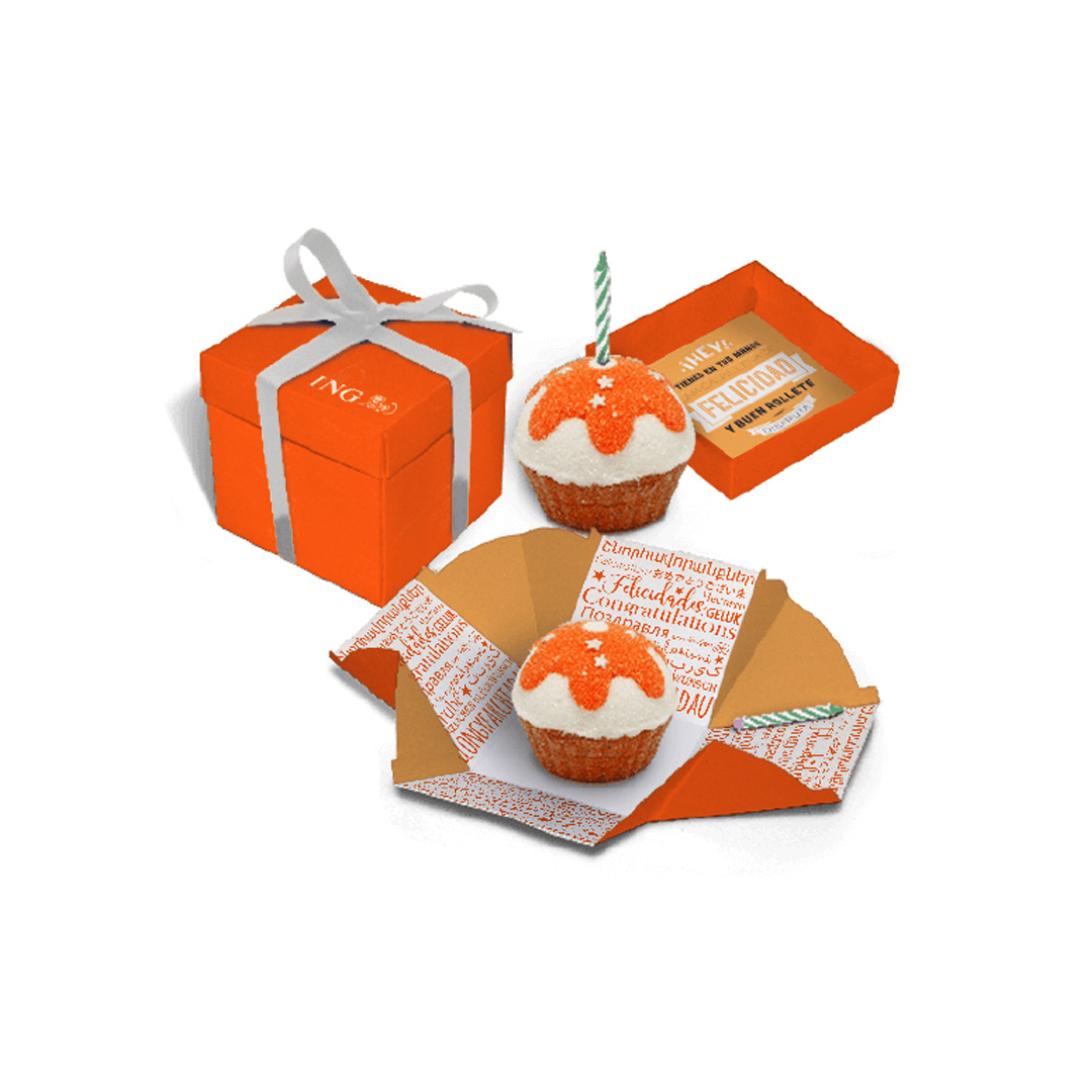 Personalization: customizable box from 1 to 4 colors.-Customizable cupcake in different colors.-Possibility of choosing the color of the bow.