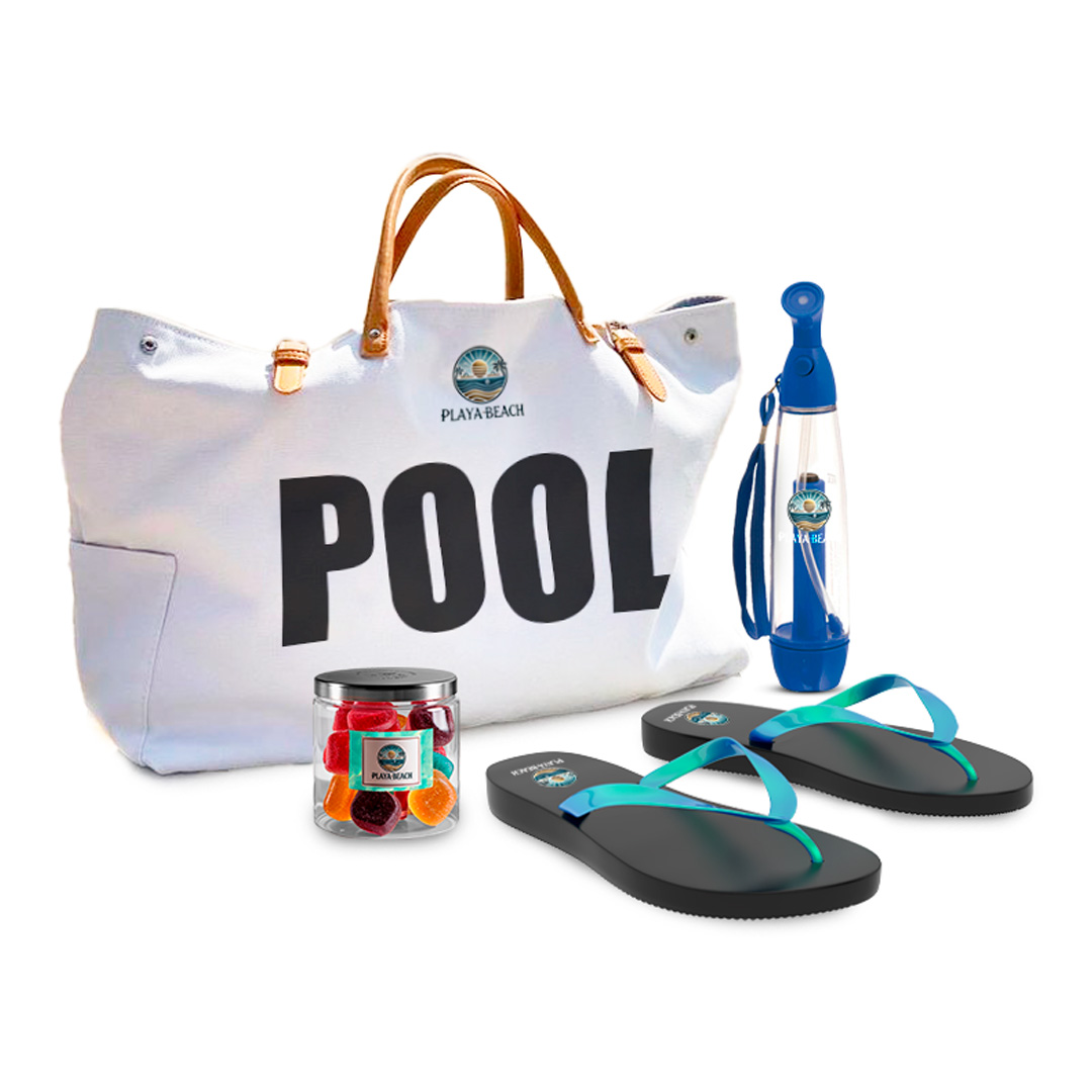 Description: The pool pack is the perfect companion to enjoy the sun and water. We create all types of bags tailored to your needs. Accompanied by any accessory such as flip flops, bottles, or a jar of candy.