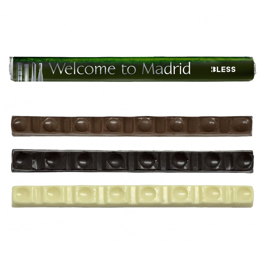 Description : Napolitaine de 30g au chocolat, saveur au choix : chocolat blanc, chocolat au lait ou chocolat noir.