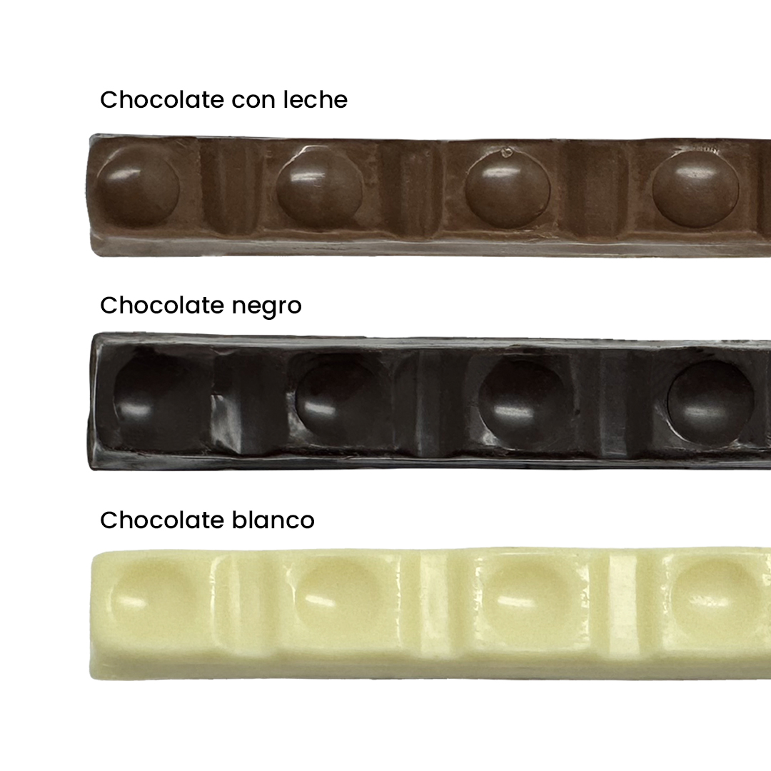 Description : Napolitaine de 30g au chocolat, saveur au choix : chocolat blanc, chocolat au lait ou chocolat noir.