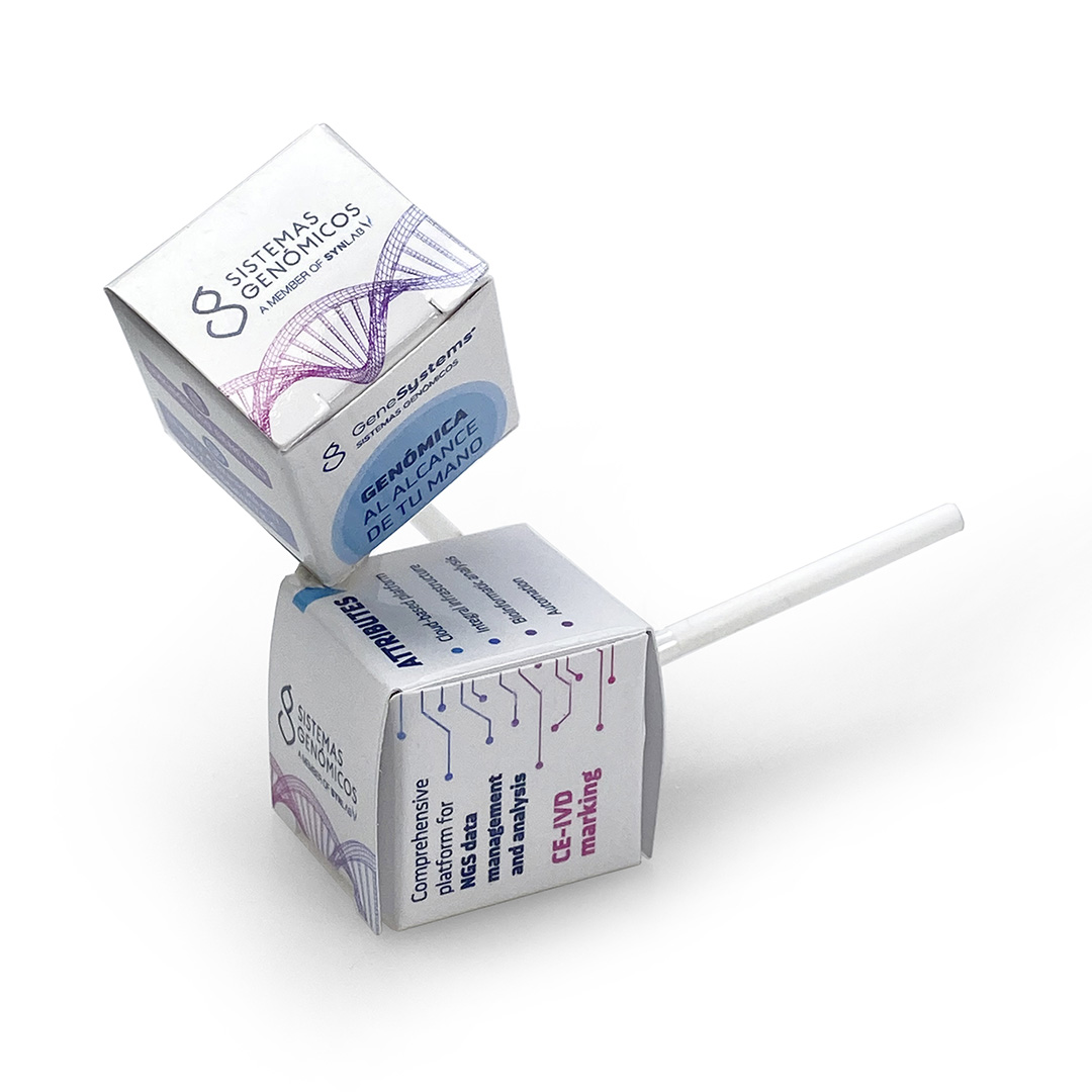 Personnalisation : coffret personnalisable de 1 à 4 couleurs. Les sucettes standard sont disponibles dans des couleurs et des saveurs assorties. Possibilité de choisir la saveur et la couleur du bonbon ou de personnaliser le papier à partir de 9 000 unités.