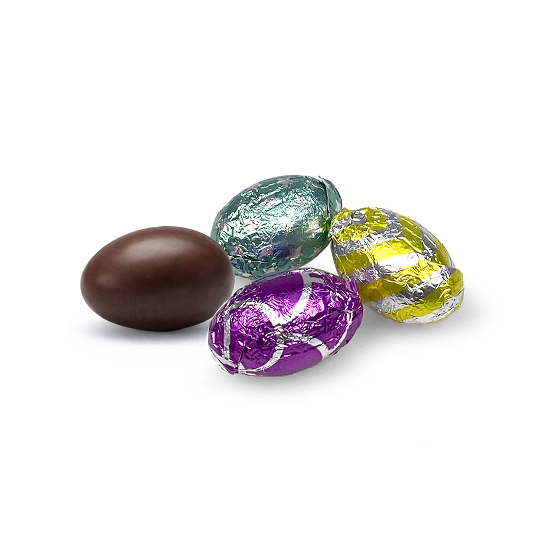 Descripción: huevos pequeños de chocolate de diferentes colores.