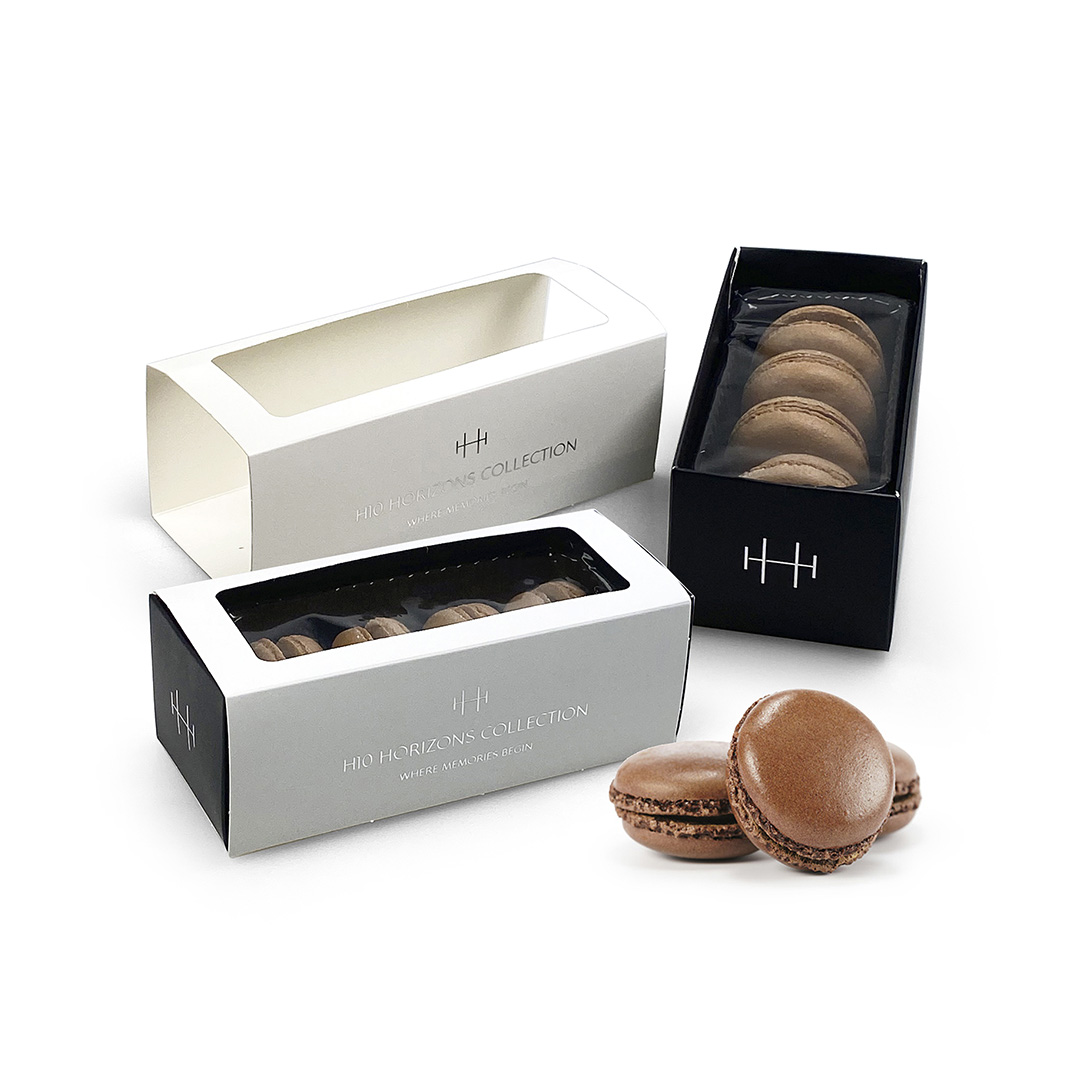 La caja es completamente personalizable, pudiendo incorporar acabados premium como stamping, UVI u otros detalles especiales. Además, existe la posibilidad de incluir una ventana, permitiendo ver los macarons en el interior y reforzando su atractivo visual desde el primer momento.
