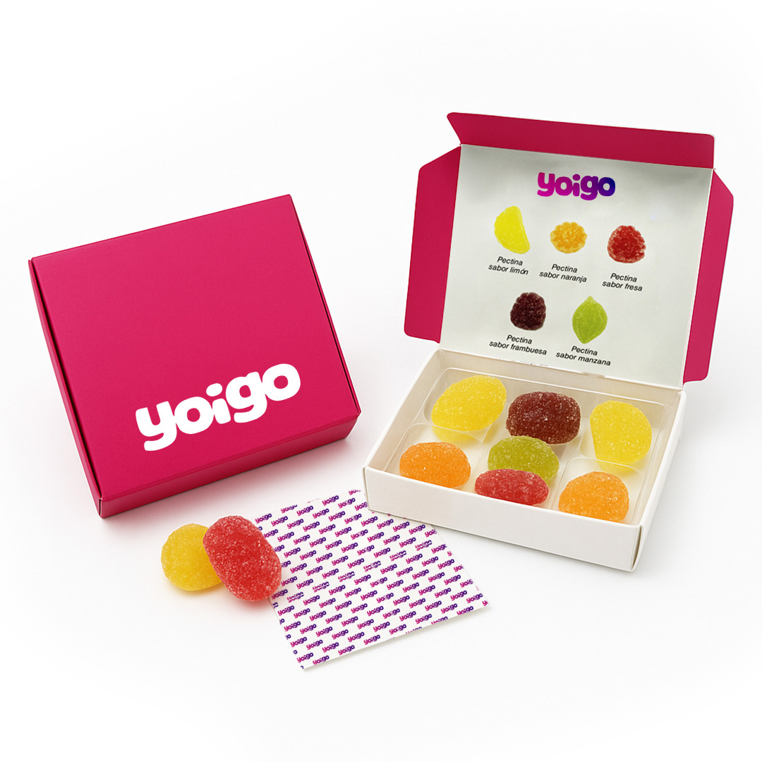 Descripción: caja folding de 7 pectinas de frutas. Posibilidad de escoger las variedades de pectinas de fruta.