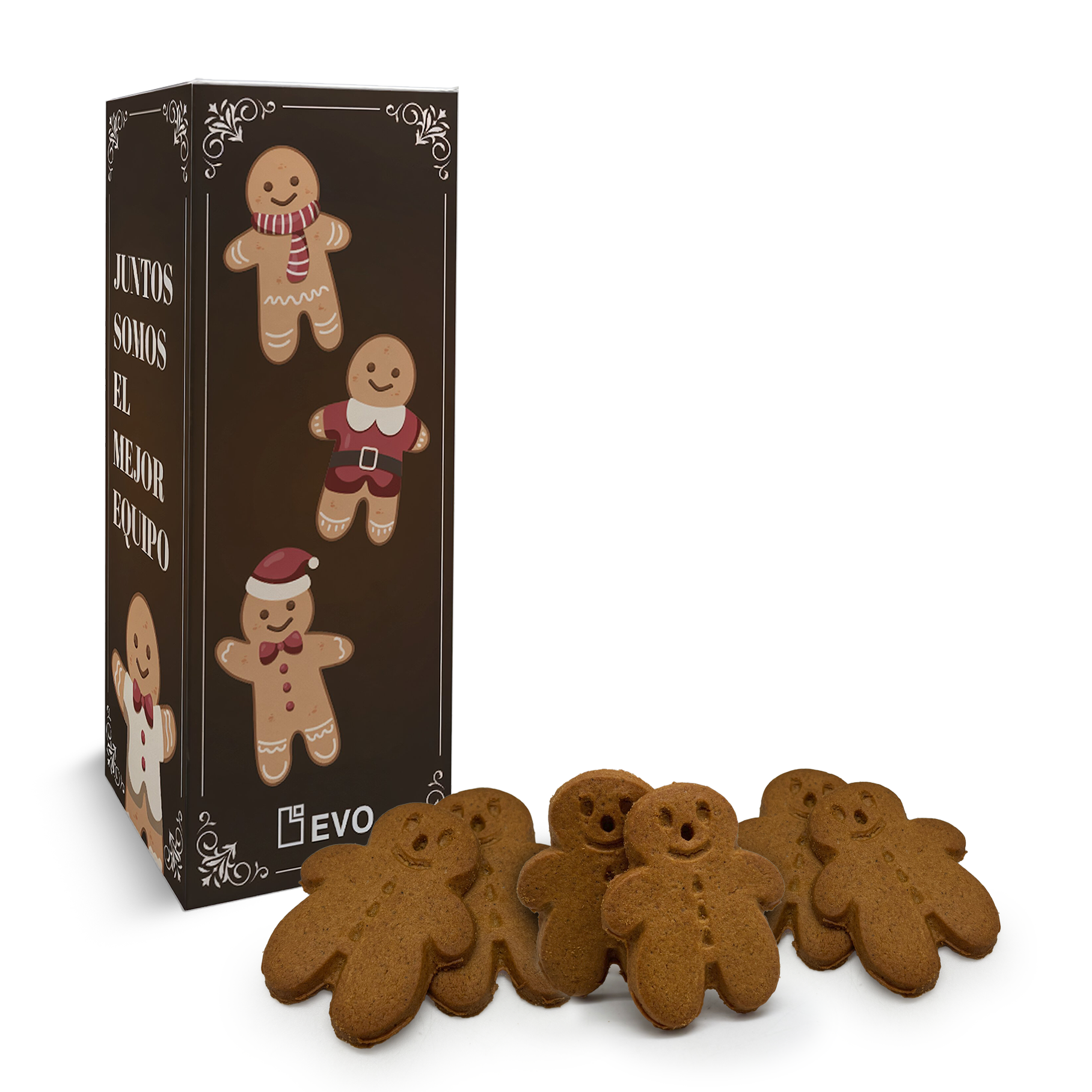 Descripción: caja (225x72x72mm) con 10 galletas de jengibre. Posibilidad de elegir otro tipo de galleta; consultar.