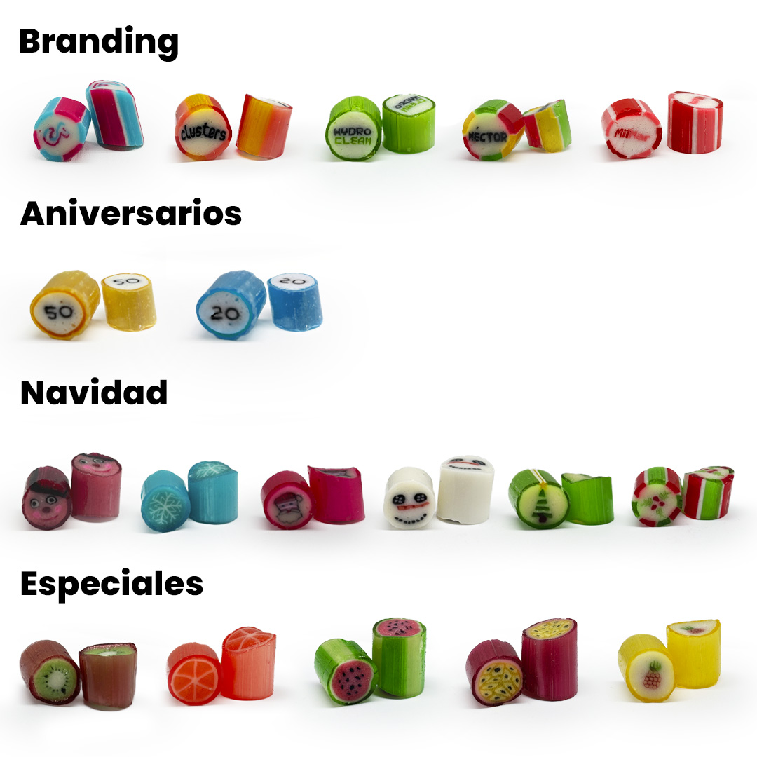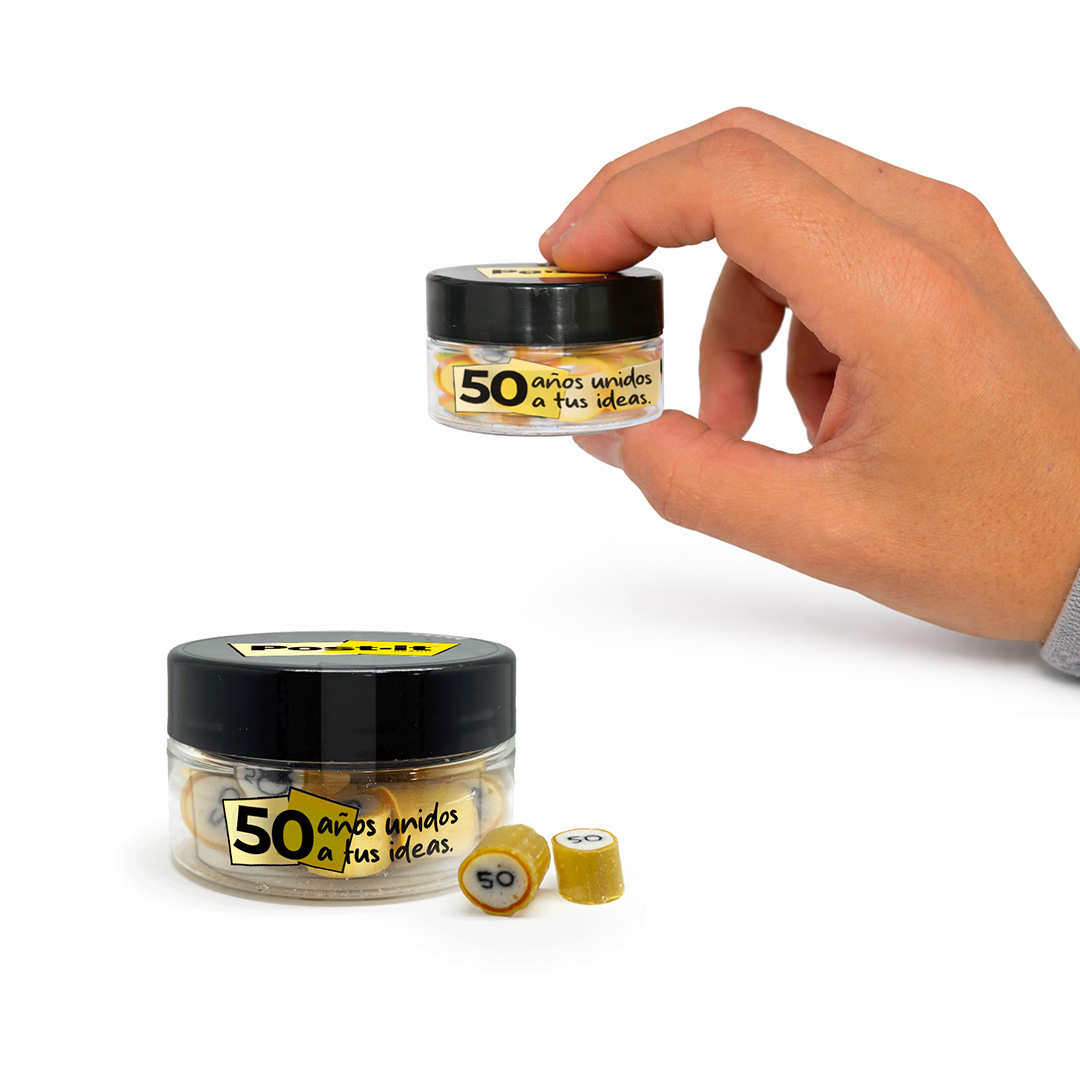 Personalización: caramelos completamente personalizables con tu marca, idea, o texto. Posibilidad de elegir el diseño, el color y el cabor de los caramelos. Tarros personalizables mediante adhesivo de 1 a 4 colores.