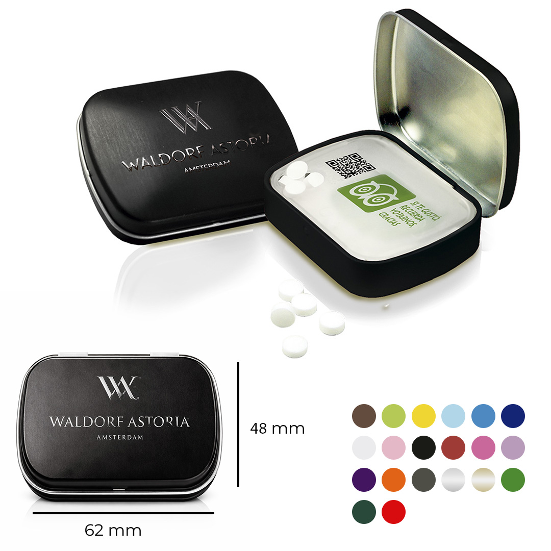 Descripción: lata bisagra con caramelos menta sin azúcar. A consultar otros sabores.