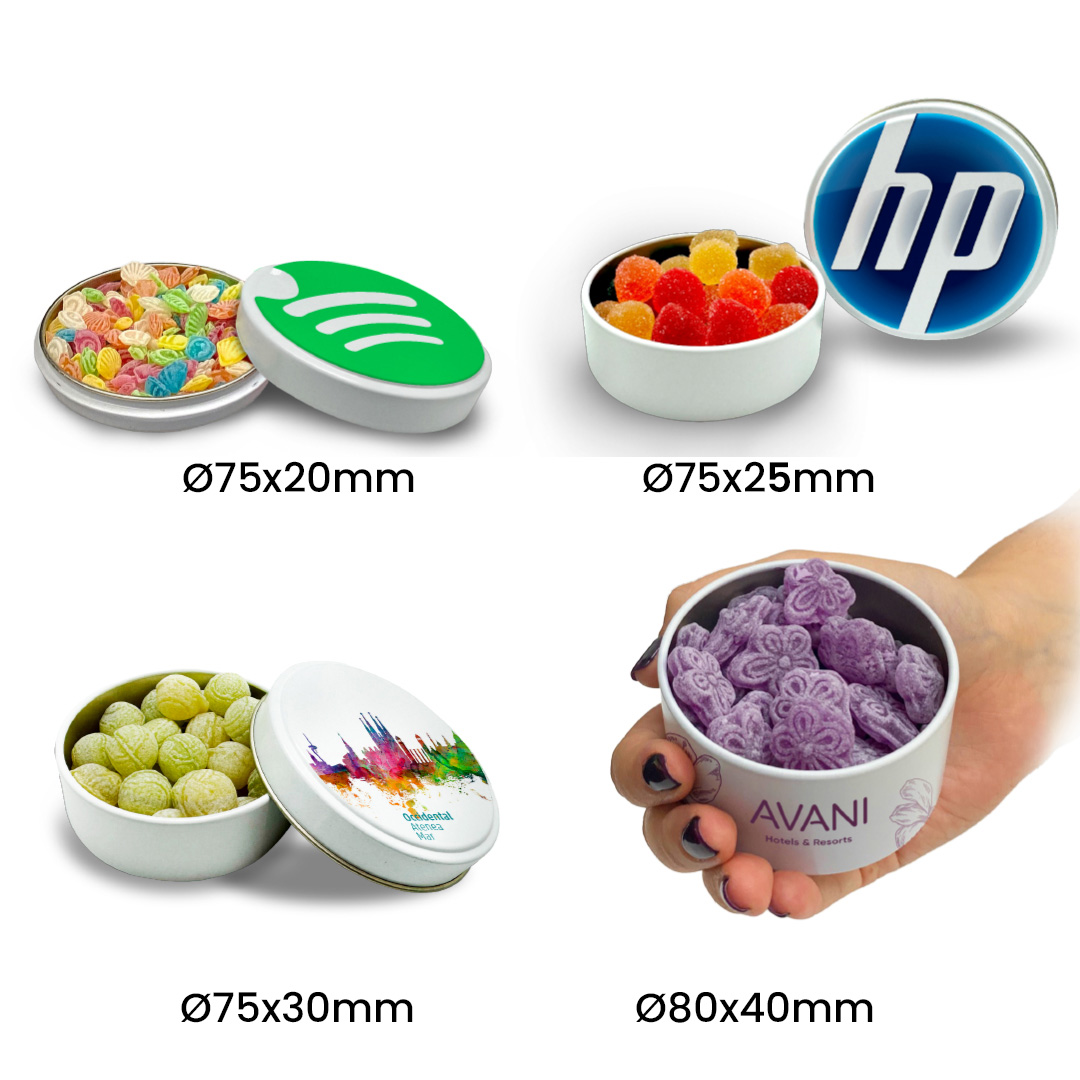 Personalización: lata estándar blanca. La tapa se puede personalizar a 4 colores a partir de 250 uds. y a partir de 5.000 uds. se puede personalizar el cuerpo de la lata (impresión en litografía).