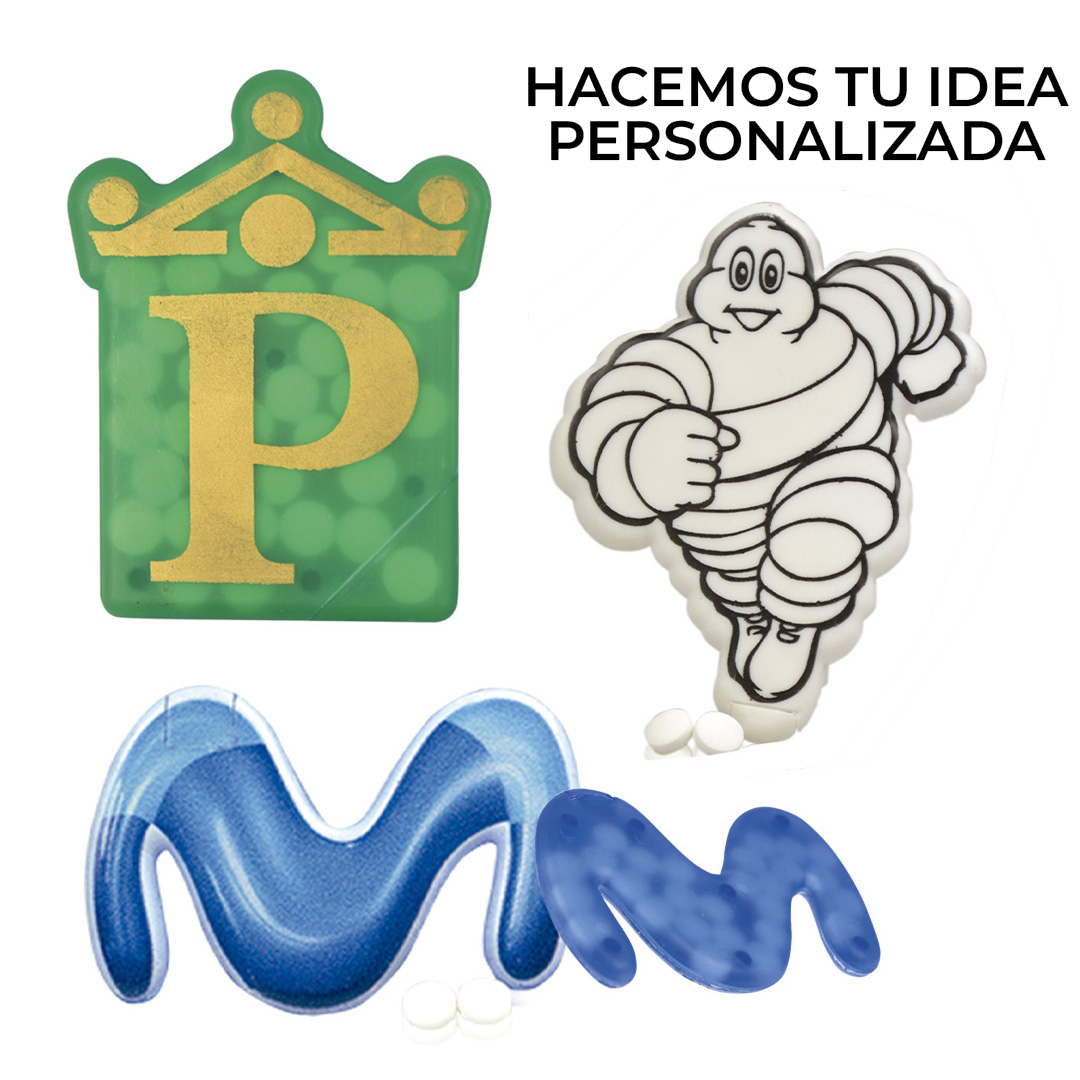 La caja se presenta con mentas sin azúcar o sabor fresa y puede realizarse con diseño estándar según los formatos disponibles o desarrollar tu idea en 3D. Existe además la posibilidad de presentación en formato díptico, aportando mayor espacio de comunicación.