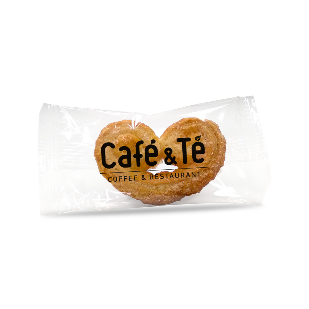 Descripción: palmerita artesana presentada en flowpack personalizado, elaborada con una textura crujiente y un sabor tradicional que la convierte en un acompañamiento ideal para café o té.