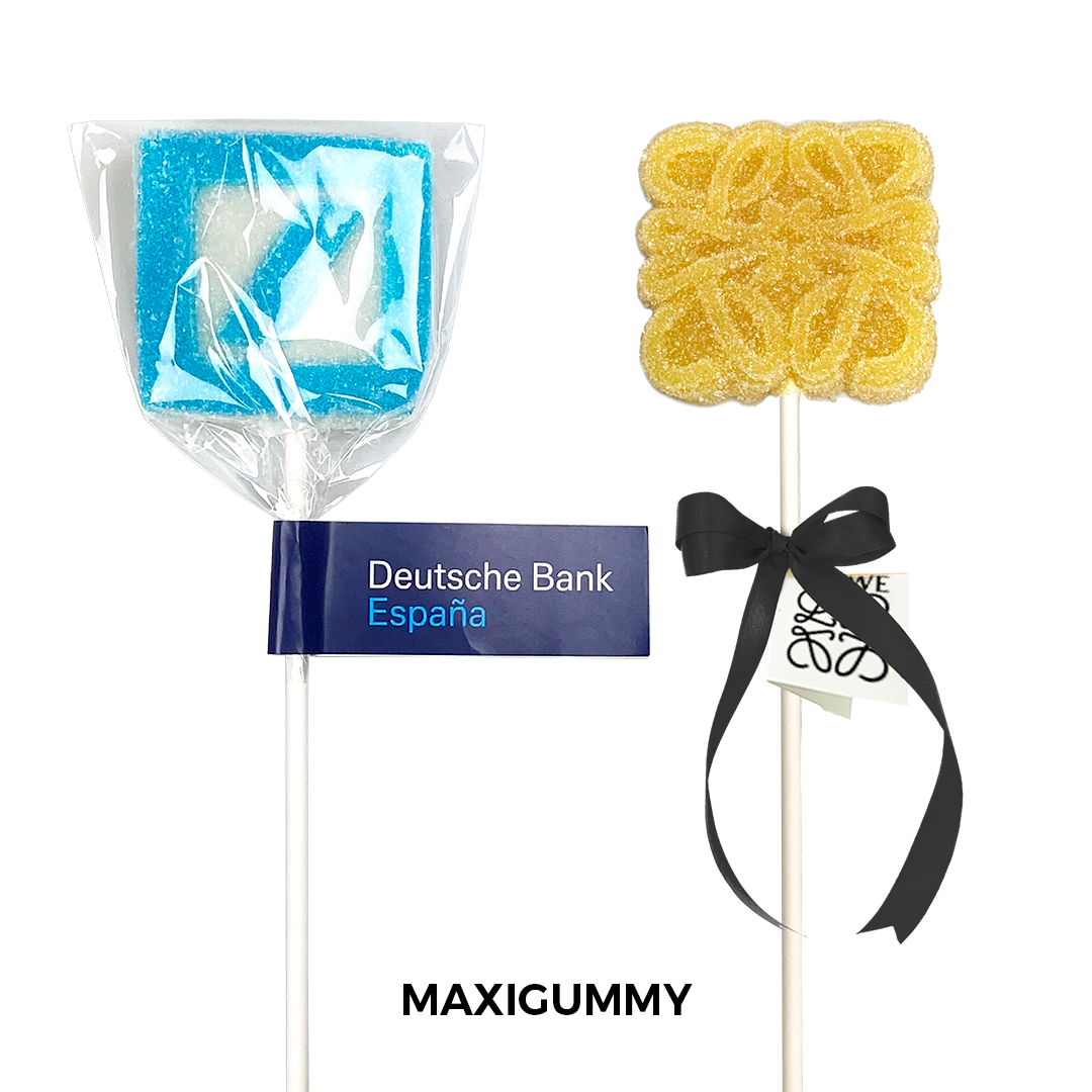 El gummy XL (12–15 g aprox.) permite crear diseños totalmente personalizados, adaptando forma y concepto a tu logo o propuesta creativa. Una opción que convierte la gominola en un elemento protagonista, con mayor presencia y capacidad de impacto.