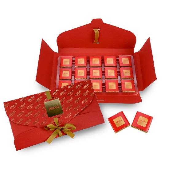 Descripción: sobre con cierre tipo lazo que contiene 15 napolitanas de chocolate, un formato que potencia al máximo su función como soporte de comunicación.