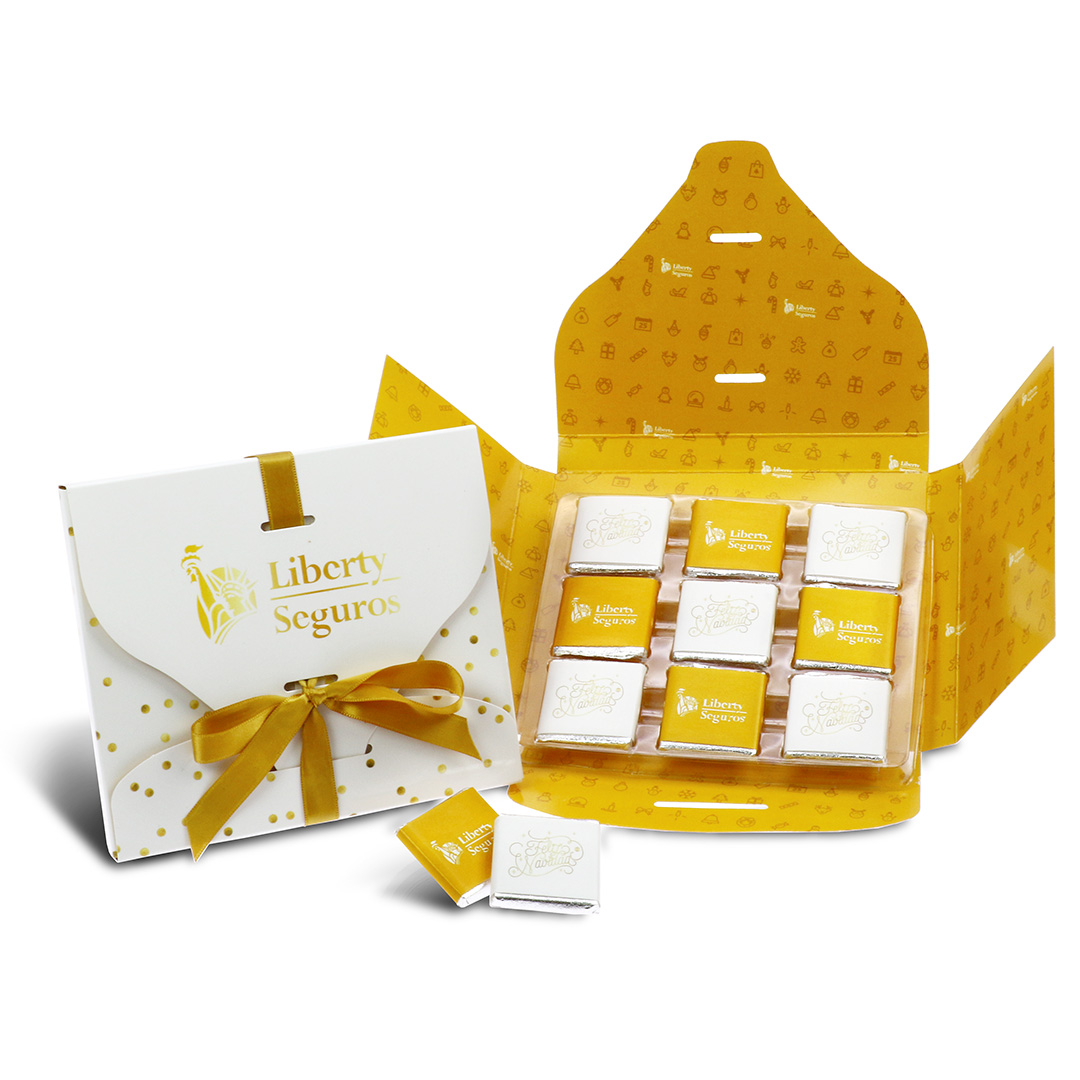 Descripción: sobre lazo relleno con 9 napolitanas de chocolate.